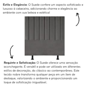 Fabricada com materiais de alta qualidade, como madeira eucalipto e revestimento em suede, esta cabeceira é durável e resistente, garantindo não apenas estilo, mas também funcionalidade para o seu ambiente.