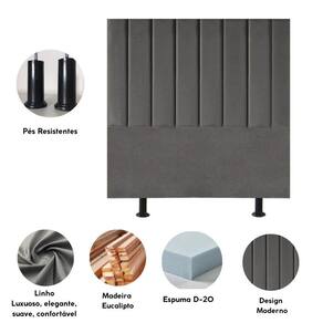 Cabeceira Estofada Cama King Box 195 Cm Catarina Linho E Frame cinza