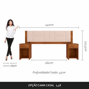 Medidas da Cabeceira montada: A: 121,5cm | L: 220cm | P: 45cm