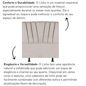 Fabricada com materiais de alta qualidade, como madeira eucalipto e revestimento em Linho, esta cabeceira é durável e resistente, garantindo não apenas estilo, mas também funcionalidade para o seu ambiente.