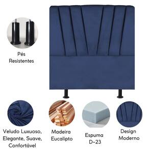 Cabeceira Estofada Cama Solteiro 100 Cm Ariel Veludo Cor:azul Marinho