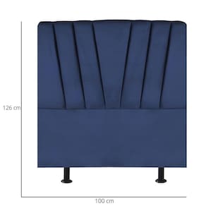 Cabeceira Estofada Cama Solteiro 100 Cm Malu Veludo Azul Marinho