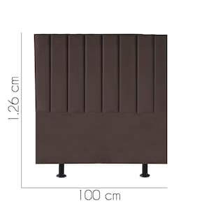 - Largura: 100 cm; - Altura: 126 cm; - Profundidade: 11 cm; - Produto estofado; - Produzido em Madeira de Pinus e Eucalipto; - Pés em pvc;
