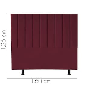 - Largura: 160 cm; - Altura: 126 cm; - Profundidade: 11 cm; - Produto estofado; - Produzido em Madeira de Pinus e Eucalipto; - Pés em pvc;