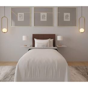 - Cabeceira suspensa com revestimento em MDF e tecido almofadado;