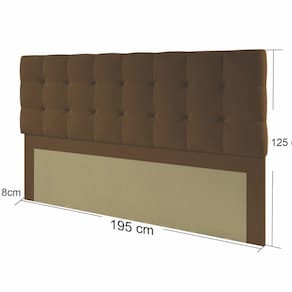 A cabeceira Paris estofada possui um lindo design, inspirada em elementos contemporâneos com detalhes em strass. Sua estrutura é confeccionada em madeira de eucalipto tratada e seu estofamento em tecido veludo 100% poliéster e seu conforto em espuma D-20. Inclui engate de parede (aplicação opcional). Produto Montado: Sim Acabamento dos Pés: Pintura Texturizada UV Altura dos Pés: 1 cm Altura Máxima dos Pés: 1.0000 Ambiente Principal: Quarto Cabeceira Estofada: Sim codigo_ean: 7900288250001 Complexidade da Montagem: Baixa: pode ser montado por uma pessoa sozinha Cor: Marrom Cor do Produto: Marrom Cor Flex: Não Densidade da Espuma: D-20 Escala de Brilho: Fosco Extensível: Não Fixação Box: Não Fixação na Parede: Sim Informações Complementares: Cabeceira com strass Itens Inclusos: 1 Cabeceira e Kit Ferragens Largura do Colchão Indicado: 193cm Linha ou Coleção: Paris Manual de Montagem e Instalação: https://product-hub-prd.madeiramadeira.com.br/200901423/documents/9aa13491-c6ee-4ccb-9bf7-7e3bd7fed29d3236162648517588068819713.pdf Marca: Denken Material dos Pés: Plástico Material Principal: Madeira Maciça Montagem Flex: Não Necessita Montagem: Sim Origem do Produto: Nacional Peso: 23 kg Possui Baú: Não Possui Espelho: Não Possui Mesa de Cabeceira: Não Possui Pés: 02 Possui Rodízio: Não Possui Possui Vidro: Não Recomendações de Uso, Manutenção e Limpeza: Pano umedecido Sapatas Niveladoras: Não Sistema de Montagem: parafuso e bucha de parede Tipo de Colchão: King Tipo de Madeira Maciça: Eucalipto Marca: Não Informado