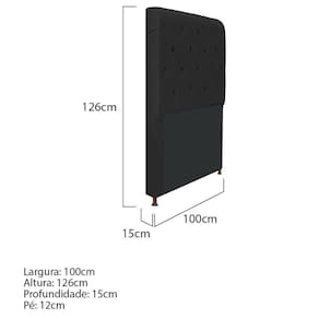 Cabeceira Estofada Cristal 100cm Preto - Preto