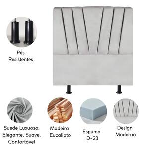 Fabricada com materiais de alta qualidade, como madeira eucalipto e revestimento em suede, esta cabeceira é durável e resistente, garantindo não apenas estilo, mas também funcionalidade para o seu ambiente.