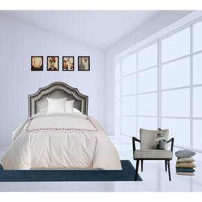 Cabeceira Estofada de Cama Solteiro Dupla Tacha Corino Cinza