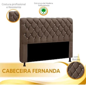Cabeceira Estofada Fernanda 1,60 Queen Star Confort Marrom Chocolate A cabeceira fernanda foi desenvolvida com designer moderno alem de nao precisar de uma montagem. O modelo veio para proporcionar outra visao de designer em cabeceira, deixando o ambiente do seu quarto mais aconchegante e moderno, assim prezamos pela satisfacao de nossos clientes que buscam o melhor para suas casas. Caracteristicas: Material da Estrutura: Madeira de eucalipto. Material e Densidade da Espuma: Poliuretano. Revestimento: Veludo Possui Pes: Sim. Tipo de Pe: Pe de PVC Possui Frame: Sim Sistema de Montagem: O produto vai desmontado com manual de montagem e todos os acessorios. Manual de Montagem: Sim. Complexidade da Montagem: Baixa. Volumes: 1 Volume. Montagem: Recomendamos que seja feita por um profissional. Recomendacao de Limpeza: Utilize pano levemente umido.
