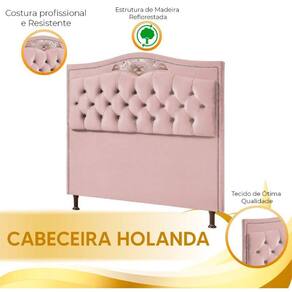 Cabeceira Estofada Holanda 1,40 Casal Veludo Speciale Home Rose