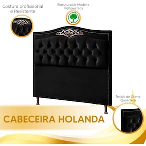 Cabeceira Estofada Holanda 1,40 Casal Veludo Star Confort Preto