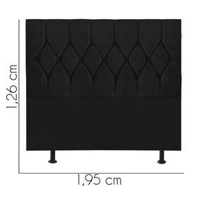- Largura: 195 cm; - Altura: 126 cm; - Profundidade: 11 cm; - Produto estofado; - Produzido em Madeira de Pinus e Eucalipto; - Pés em pvc.