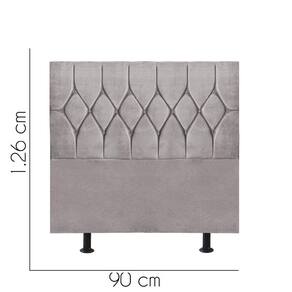 - Largura: 90 cm; - Altura: 126 cm; - Profundidade: 11 cm; - Produto estofado; - Produzido em Madeira de Pinus e Eucalipto; - Pés em pvc.