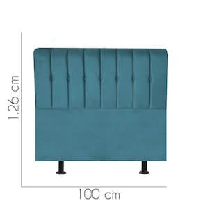 - Largura: 100 cm; - Altura: 126 cm; - Profundidade: 11 cm; - Produto estofado; - Produzido em Madeira de Pinus e Eucalipto; - Pés em pvc.