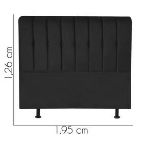 - Largura: 195 cm; - Altura: 126 cm; - Profundidade: 11 cm; - Produto estofado; - Produzido em Madeira de Pinus e Eucalipto; - Pés em pvc.
