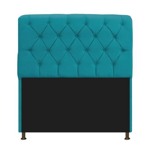 Cabeceira Estofada Lady 140 Cm Solteiro Com Capitonê Suede - Doce Sonho Móveis Cor Azul Turquesa