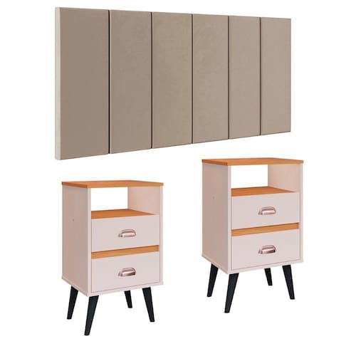 Renove seu quarto com o kit das Lojas RPM - uma mistura perfeita de conforto e estilo. A Cabeceira Julia, feita de tecido de alta qualidade, adiciona charme e elegância ao seu espaço com seu design modular e ajuste suspenso, proporcionando segurança e sofisticação durante o sono e a leitura noturna. As Mesas Classic New completam o conjunto, oferecendo funcionalidade com duas gavetas, nicho versátil e amplo espaço para organizar e exibir seus itens pessoais. Feito em MDP de excelente qualidade, o kit garante estilo e durabilidade, criando um ambiente acolhedor para noites tranquilas. Destaque para a personalização com réguas dupla face, permitindo que você escolha as cores que mais combinam com seu estilo. Seu quarto é mais do que um local para dormir; é um refúgio para recarregar energias. Adquira sua agora e transforme suas noites em momentos inesquecíveis de conforto e estilo.