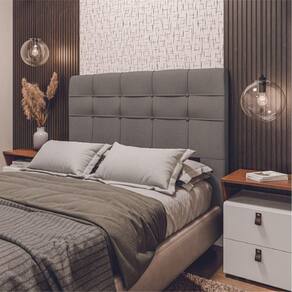 Transforme o seu quarto com a Cabeceira Hanover! Essa é a peça ideal para renovar o ambiente com estilo e funcionalidade. Seu design moderno e acabamento exclusivo se adaptam perfeitamente a qualquer decoração, acomodando camas de casal com elegância. A cabeceira é estofada com espuma de alta qualidade e revestida em veluplus de fácil limpeza, garantindo durabilidade, conforto e resistência para o seu dia a dia.