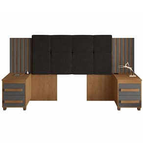 Descrição: Transforme seu quarto com a Cabeceira Regulável Suíça! É a peça ideal para elevar o seu quarto a um novo patamar de estilo e funcionalidade. Com detalhe ripado e design moderno que se adapta a qualquer decoração, acomoda box de 1,38m, 1,58m, 1,93m e ainda conta com duas mesas de cabeceira, 4 gavetas e pés em PVC que não agridem o piso! Feita com materiais de qualidade garantindo maior durabilidade e resistência.