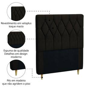 Transforme seu quarto com a Cabeceira Miami! É a peça ideal para deixar o seu quarto com um novo de estilo e funcionalidade. Com design moderno e acabamento artesanal que se adapta a qualquer decoração, acomoda box de 0,88m e ainda conta com pés em madeira que não agridem o piso! Estofada com espuma de alta qualidade e revestimento em veloplus de fácil limpeza, garantindo maior durabilidade e resistência.