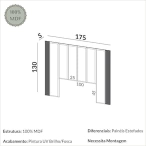 Cabeceira estofada com 175cm, produzida em mdf de 25cm com pintura uv 7 camadas, alta durabilidade, com 6 painéis estofados com tecido linho na cor verde, 100% poliéster, moderna, fixação na parede, montagem fácil. Produto Montado: Sim Ambiente Principal: Quarto Cabeceira Estofada: Sim codigo_ean: 7900288118127 Complexidade da Montagem: Baixa: pode ser montado por uma pessoa sozinha Cor: Freijó/Verde Cor do Produto: Freijó/Verde Densidade da Espuma: D-20 Escala de Brilho: Fosco Extensível: Não Fixação Box: Não Fixação na Parede: Sim Itens Inclusos: 1 Cabeceira Manual de Montagem e Instalação: https://product-hub-prd.madeiramadeira.com.br/992509/documents/2846df1f-c9b3-4b6c-aa49-6a8e948a9e702824010378117442842730088.pdf Marca: Dalla Costa Material Principal: MDF Necessita Montagem: Sim Origem do Produto: Nacional Peso: 24,5 kg Possui Baú: Não Possui Espelho: Não Possui Mesa de Cabeceira: Não Possui Pés: Não Possui Vidro: Não Recomendações de Uso, Manutenção e Limpeza: Pano seco Sistema de Montagem: Parafuso Tipo de Colchão: Casal