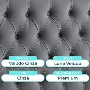 Cabeceira Estofada Queen Luna Nature Veludo Grafite 158x136 Cabeceira queen com 136cm de altura, ideal para um visual elegante e imponente Revestida em veludo, com toque macio e acabamento sofisticado
