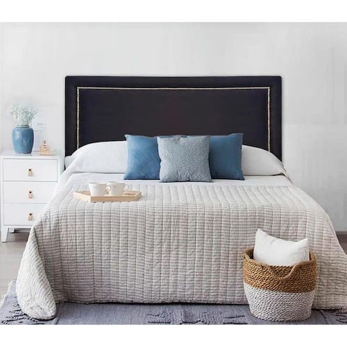 Cabeceira Estofada Reta Luxo com Tachas - Queen - PRETO