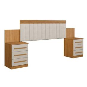 Cabeceira Extensiva Estofada C/ 2 Mesas De Cabeceira Império Cinamomo Off Cabeceira Imperio Estofada: Flexibilidade e Modernidade A Cabeceira Imperio Estofada e produzida em chapa de 15 mm, garantindo robustez e durabilidade. Ela inclui 2 mesas de cabeceira e 6 gavetas com corredicas telescopicas, oferecendo bastante espaco para armazenamento. Com montagem dupla, e compativel com colchoes de 140 cm e 160 cm, sem necessidade de parafusar na parede. O acabamento em tecido linho adiciona um toque de modernidade e flexibilidade ao seu ambiente.