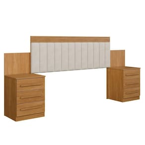 Cabeceira Extensiva Estofada C/ 2 Mesas De Cabeceira Império Cinamomo Cabeceira Imperio Estofada: Flexibilidade e Modernidade A Cabeceira Imperio Estofada e produzida em chapa de 15 mm, garantindo robustez e durabilidade. Ela inclui 2 mesas de cabeceira e 6 gavetas com corredicas telescopicas, oferecendo bastante espaco para armazenamento. Com montagem dupla, e compativel com colchoes de 140 cm e 160 cm, sem necessidade de parafusar na parede. O acabamento em tecido linho adiciona um toque de modernidade e flexibilidade ao seu ambiente.