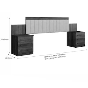 Medidas do produto Altura:1,15cm Largura:2,30cm para box de 1,40cm Largura:2,50cm para box de 1,60cm Profundidade:0,40cm