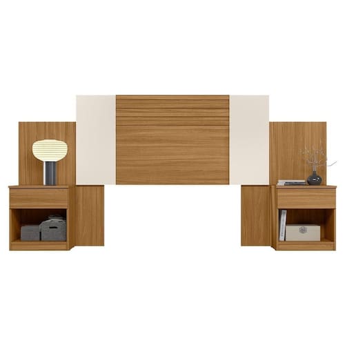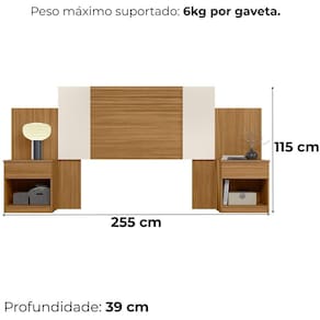 MDPCabeceira Extensível Araguaia alia praticidade e sofisticação para complementar seu quarto com funcionalidade. Estrutura em MDP (15 mm / 12 mm) com acabamento em pintura UV. Conta com 2 mesas de cabeceira integradas (1 gaveta cada, com corrediças telescópicas e nicho). Modelo extensível, compatível com colchões de 1,38 m e 1,58 m de largura, além de sapatas plásticas para maior estabilidade. Este produto será entregue em 02 volumes.