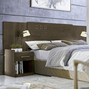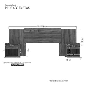 Cabeceira Extensível Casal Queen Plus com Gaveta - PR Móveis Seu quarto ficará mais moderno com o design da Cabeceira Casal Plus. Prática e funcional, ela conta com 2 mesas de cabeceira acoplada, perfeita para apoio de pequenos objetos e de seu livro favorito. Sua estrutura está projetada para utilizar colchão box de casal ou queen, já que possui sistema de montagem extensível. Transforme seu ambiente com a Cabeceira Casal Plus.