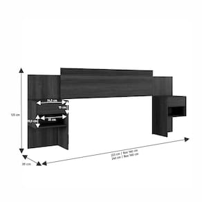 Características: Estrutura em MDP/MDF 2 Mesas de cabeceira 2 Gavetas Nicho Corrediças telescópicas Indicado para colchões de 140 cm -casal- e 160 cm -queen- Obs.: Não acompanha cama nem colchão