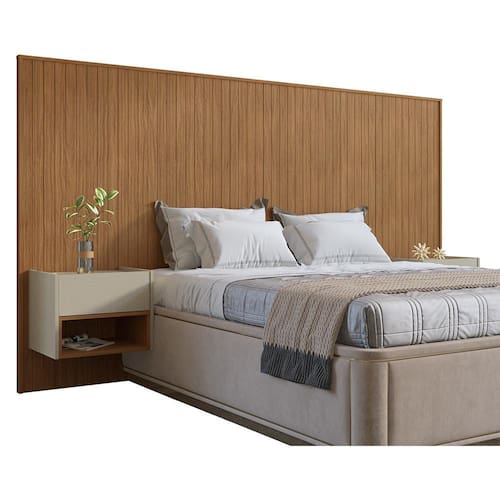 Material da cabeceira: MDP/MDF 15mm com acabamento do painel frisado;
