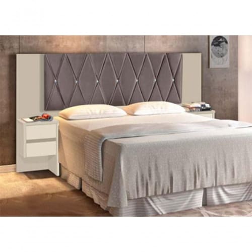- Painel revestido com tecido trabalhado em junco e botões cristal