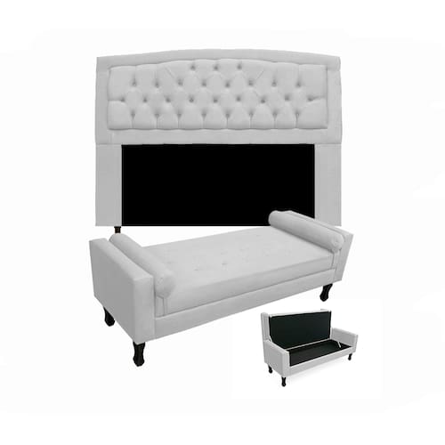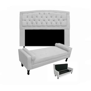 O Conjunto Geovana + Fênix é o kit perfeito para seu quarto, possui um modelo único e totalmente diferenciado, que vai levar um toque de aconchego e charme final que seu quarto tanto precisa. Uma ótima composição para deixar seu quarto mais luxuoso e organizado podendo colocar cobertas, travesseiros ou sapatos dentro no baú. Produtos com estrutura de madeira de eucalipto, ecologicamente correto, espuma de poliuretana, revestimento em Suede.