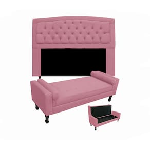 Cabeceira Geovana + Calçadeira Fênix Para Quarto Casal 140cm Suede Rosa Barbie - LM DECOR