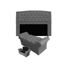 Cabeceira Geovana e Calçadeira Veneza Para Quarto Casal 140cm Suede Cinza - LM DECOR