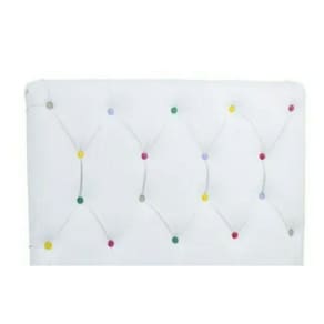 Cabeceira Infantil Estofada Botão Colorido Em material sintético Branco Ter cabeceiras de cama no quarto não é pouca coisa. Por mais que elas não sejam itens obrigatórios na decoração do ambiente, são responsáveis por uma série de benefícios. A Cabeceira Painel infantil captone é a melhor opção para quem quer um quarto mais elegante e confortável para as crianças . Por ser feita em madeira MDF, é sustentável e resistente. O revestimento em material sintético torna o móvel ainda mais sofisticado e bonito. Mas, não para por aí. As crianças que passam horas sentadas na cama, não precisará mais encostar na parede gelada, uma vez que o tecido confortará seu corpo. Além disso, esta cabeceira elegante melhora o som do ambiente, já que o tecido ajuda a isolar o som. Outra característica das cabeceiras estofadas é que elas mantém a parede limpa, ao evitar o acúmulo de poeiras e outras sujeiras. Como limpar cabeceiras Para que a Cabeceira Painel em material sintético branco captone sempre pareça nova, é preciso tomar alguns cuidados com frequência. Utilize um aspirador de pó, para retirar as sujeiras mais superficiais. Caso a peça manche, utilize um pano úmido com sabão neutro imediatamente. Coloque a cabeceira colorida para secar na sombra. Então, quando estiver tudo certo outra vez, combine a peça com almofadas coloridas e edredons estilosos. Cor: Branco Botões: Coloridos Medidas aproximadas do produto - Comprimento: 90 cm - Altura: 60 cm - Largura: 4 cm - Peso: 5400 g Marca: Captonê Design Ean: 7890001479881