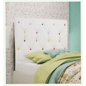 Cabeceira Infantil Estofada Botão Colorido Em material sintético Branco Ter cabeceiras de cama no quarto não é pouca coisa. Por mais que elas não sejam itens obrigatórios na decoração do ambiente, são responsáveis por uma série de benefícios. A Cabeceira Painel infantil captone é a melhor opção para quem quer um quarto mais elegante e confortável para as crianças . Por ser feita em madeira MDF, é sustentável e resistente. O revestimento em material sintético torna o móvel ainda mais sofisticado e bonito. Mas, não para por aí. As crianças que passam horas sentadas na cama, não precisará mais encostar na parede gelada, uma vez que o tecido confortará seu corpo. Além disso, esta cabeceira elegante melhora o som do ambiente, já que o tecido ajuda a isolar o som. Outra característica das cabeceiras estofadas é que elas mantém a parede limpa, ao evitar o acúmulo de poeiras e outras sujeiras. Como limpar cabeceiras Para que a Cabeceira Painel em material sintético branco captone sempre pareça nova, é preciso tomar alguns cuidados com frequência. Utilize um aspirador de pó, para retirar as sujeiras mais superficiais. Caso a peça manche, utilize um pano úmido com sabão neutro imediatamente. Coloque a cabeceira colorida para secar na sombra. Então, quando estiver tudo certo outra vez, combine a peça com almofadas coloridas e edredons estilosos. Cor: Branco Botões: Coloridos Medidas aproximadas do produto - Comprimento: 90 cm - Altura: 60 cm - Largura: 4 cm - Peso: 5400 g Marca: Captonê Design