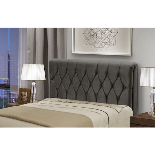 Caracteristicas: Marca: Dobue Modelo: Istambul Tipo: King Para colchao de: 186 x 198 cm Material da estrutura: Madeira branca Acabamento: Artesanal Revestimento: Tecido Sued Amassado Escala de brilho: Fosco Pes: 2 Sistema de montagem: Parafusos