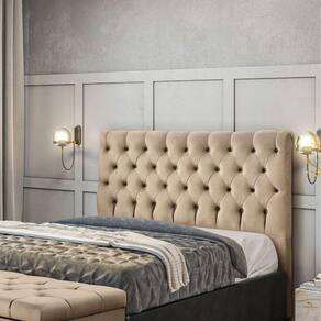 A Cabeceira Cristal e tapecada com espuma de poliuretano e revestimento em tecido suede , botoes revestidos em tecido do mesmo revestimento e ainda possui detalhes com botoes que imitam o strass que deixam o produto mais atrativo e dando um toque de charme.