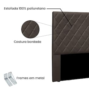 Apresentamos o modelo de cabeceira Esmeralda que veio para completar o seu quarto. Visual moderno e sofisticado com o tamanho perfeito para você, produzida com materiais de primeira linha, com suas linhas geométricas e costuras bordadas fazem dela uma obra de arte no seu quarto.