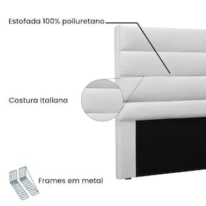 Visual moderno e sofisticado com o tamanho perfeito para você, produzida com materiais de primeira linha, como o nome mesmo já diz Lá Italiana é toda com costuras italiana com linhas horizontais, uma obra de arte no seu quarto que vai trazer o conforto que você merece. Informações Técnicas: Tecido: Corano Estrutura: Madeira Industrializada Densidade da Espuma: D-23 Costura: Bordada Montagem: Acompanha manual de montagem, kit frame e parafusos para cama box Medidas: Altura total: 1,25 m Largura total: 1,95 m Profundidade total: 0,08 m Peso: 12,8 kg Informações Importantes: Confira as dimensões do produto no momento da compra e certifique-se de que passará normalmente por escadas, elevadores, portas e corredores. Os produtos vão embalados e enviados com total segurança. As cores dos produtos podem sofrer alterações dependendo do seu monitor. Por se tratar de estofado as medidas podem ter uma pequena variação em até 3 cm. Não nos responsabilizamos no ato da entrega por montagens, desmontagens, instalações de produtos. Não nos responsabilizamos no ato da entrega por subir escadas, elevadores, nem utilização de guinchos ou equipamentos similares para acesso a pisos superiores em apartamentos.
