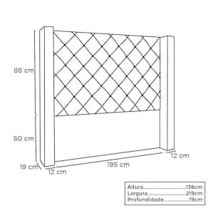 A cabeceira Vicenza nos traz o estilo neoclássico, o deslumbre imperial do conforto e beleza. Visual moderno e sofisticado com o tamanho perfeito para o seu quarto. produzida com materiais de primeira linha, botões forrados no tecido com costura bordada que fazem dela uma obra de arte no seu quarto. Informações Técnicas: Tecido: Suede Veludo Light Estrutura: Madeira Industrializada Densidade da Espuma: D-23 Detalhes: Tachas em Metal Fumê Costura: Bordada Botões: Forrado no tecido Montagem: Acompanha manual de montagem, kit frame e parafusos para cama box Medidas: Altura total: 1,38 m Largura total: 2,19 m Profundidade total: 0,18 m Peso: 23 kg Informações Importantes: Confira as dimensões do produto no momento da compra e certifique-se de que passará normalmente por escadas, elevadores, portas e corredores. Os produtos vão embalados e enviados com total segurança. As cores dos produtos podem sofrer alterações dependendo do seu monitor. Por se tratar de estofado as medidas podem ter uma pequena variação em até 3 cm. Não nos responsabilizamos no ato da entrega por montagens, desmontagens, instalações de produtos. Não nos responsabilizamos no ato da entrega por subir escadas, elevadores, nem utilização de guinchos ou equipamentos similares para acesso a pisos superiores em apartamentos. undefined