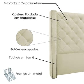 A cabeceira Vicenza nos traz o estilo neoclássico, o deslumbre imperial do conforto e beleza. Visual moderno e sofisticado com o tamanho perfeito para o seu quarto. produzida com materiais de primeira linha, botões forrados no tecido com costura bordada que fazem dela uma obra de arte no seu quarto.