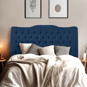 Cabeceira King Estofada Dunas - Veludo Azul - Azul Petróleo