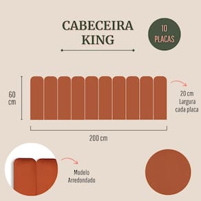 Tamanho King (10 placas): 200cm (comprimento total) x 60cm (altura) x 3 cm (profundidade).