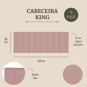 Tamanho King (10 placas): 200cm (comprimento total) x 60cm (altura) x 3 cm (profundidade).